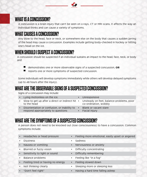 As the national body for our sport and a leader in creating a safe environment for sport, Hockey Canada has worked with numerous partners to develop a series of Concussion resources and a toolbox for all associations to use including: