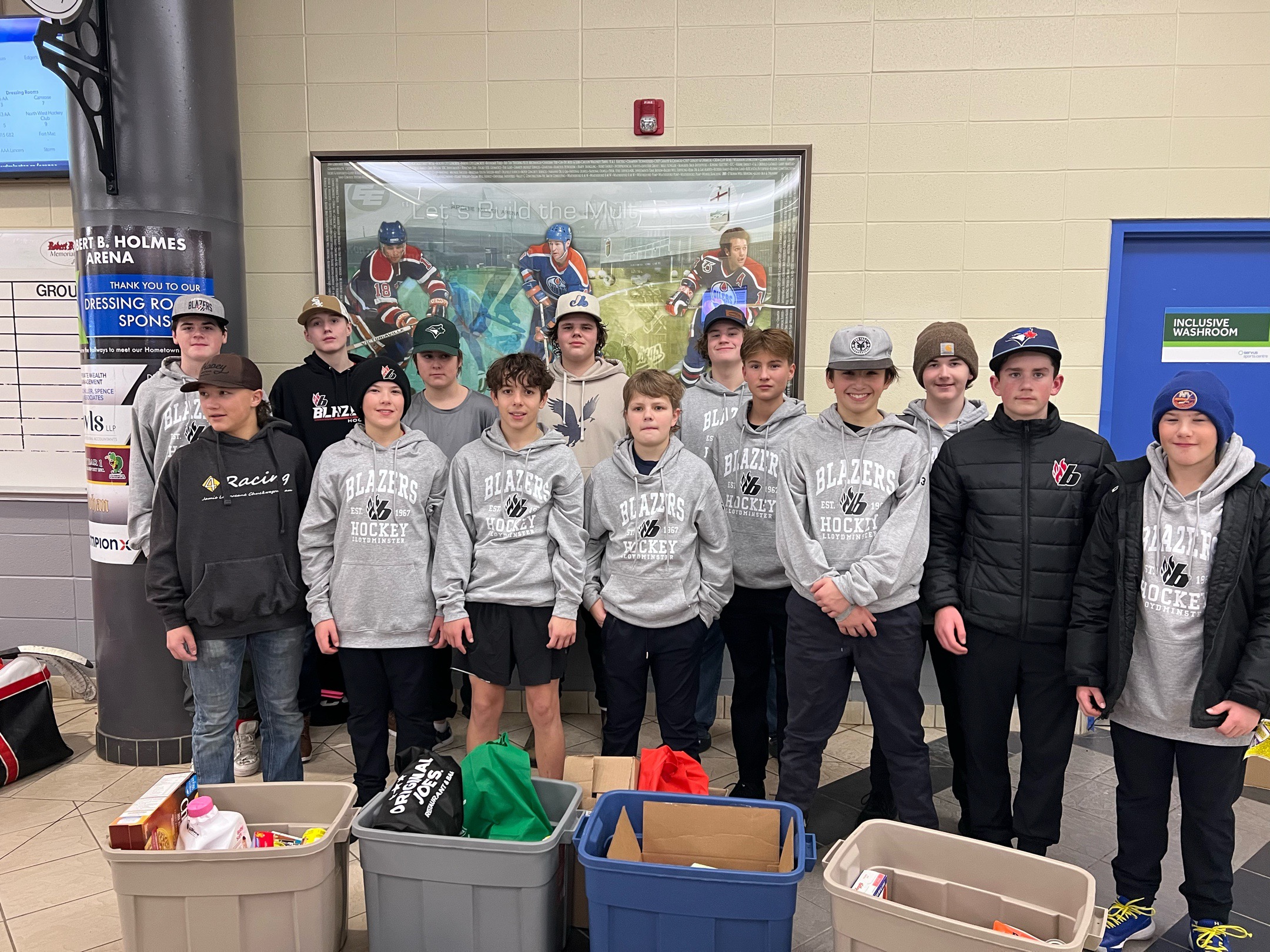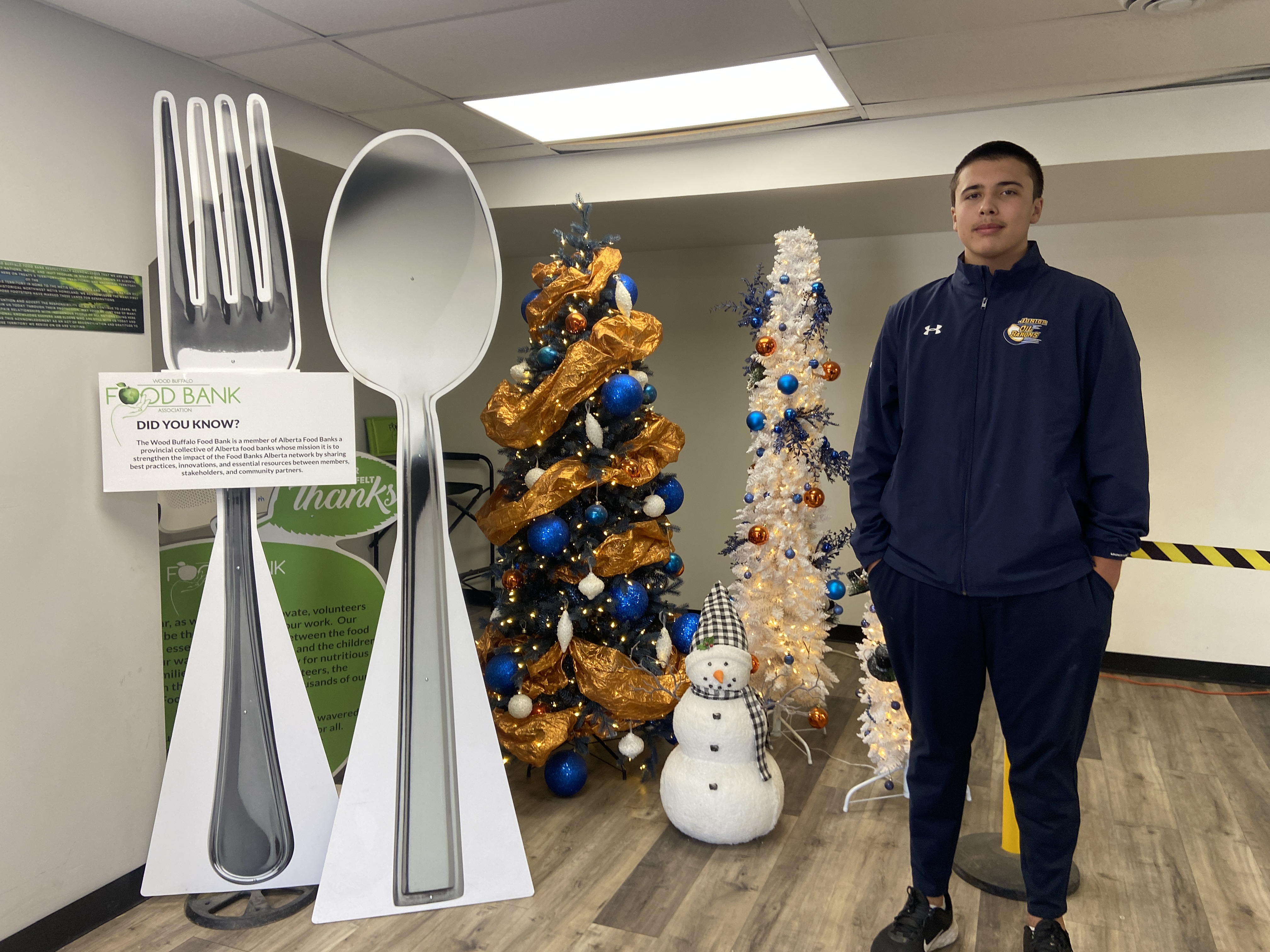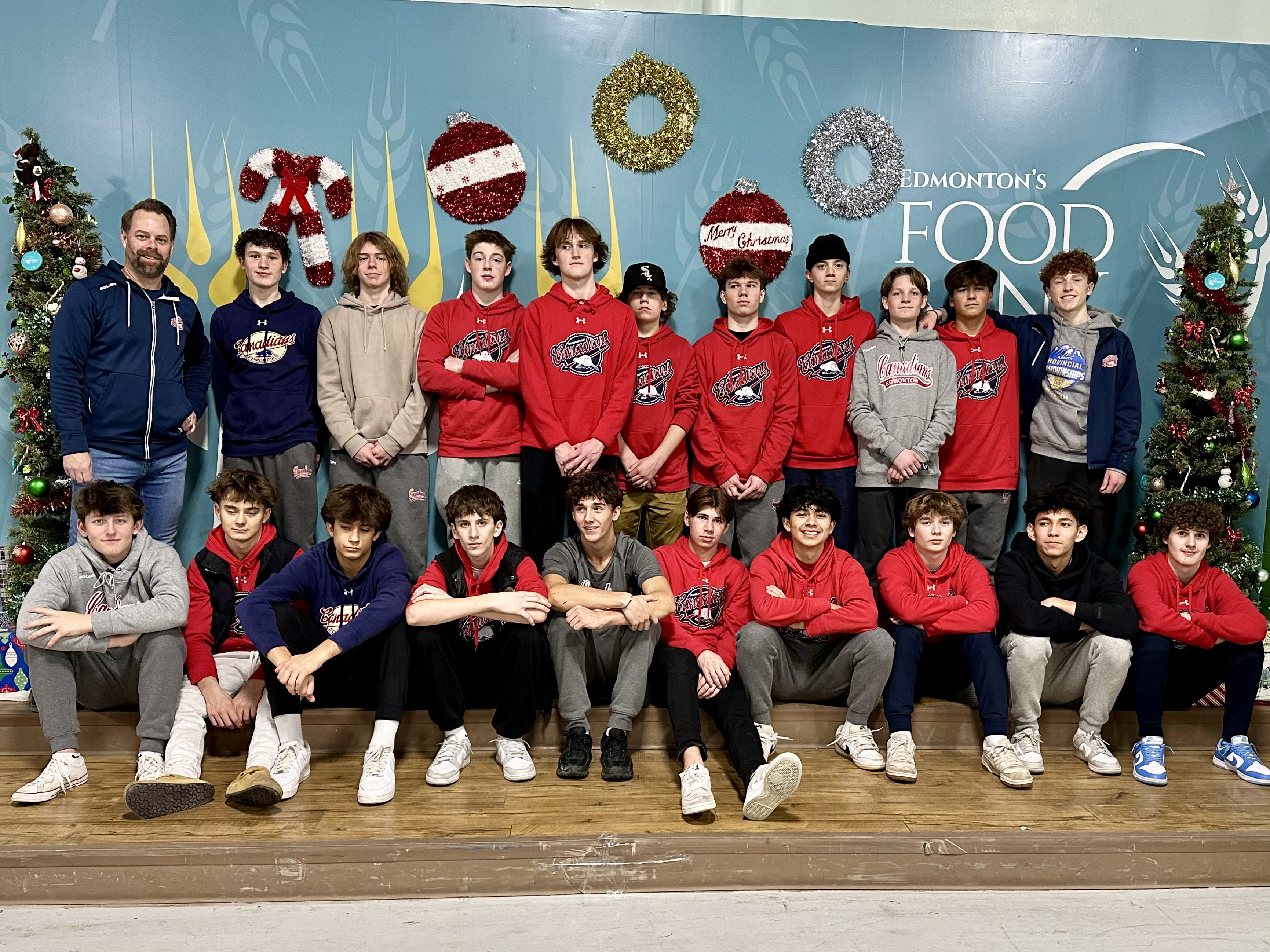 The Fort McMurray U16AA Junior Oil Barons have been actively involved in giving back to their community. The team collected food at their home games to support the local food bank. Additionally, in December, the players attended a seniors’ event, where they set up tables, served food, and helped with cleanup. Their efforts demonstrate a strong commitment to supporting both local families and the senior community.