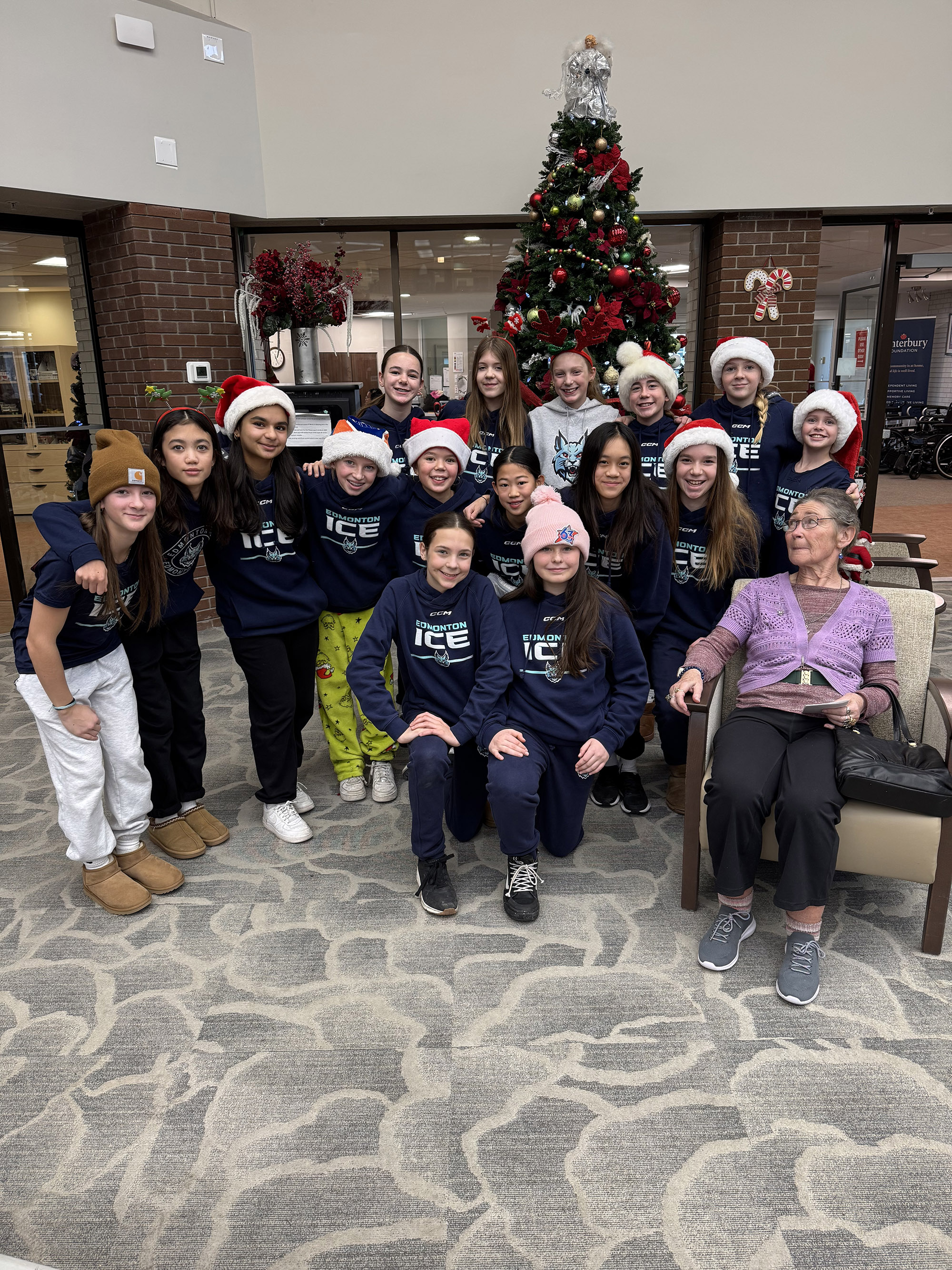 The Edmonton Ice Blue U13AA team visited Canterbury Foundation Senior’s Living, where they had the opportunity to sit with seniors and create Christmas cards for the residents. They spent time chatting with the seniors and spreading Christmas cheer throughout the facility.