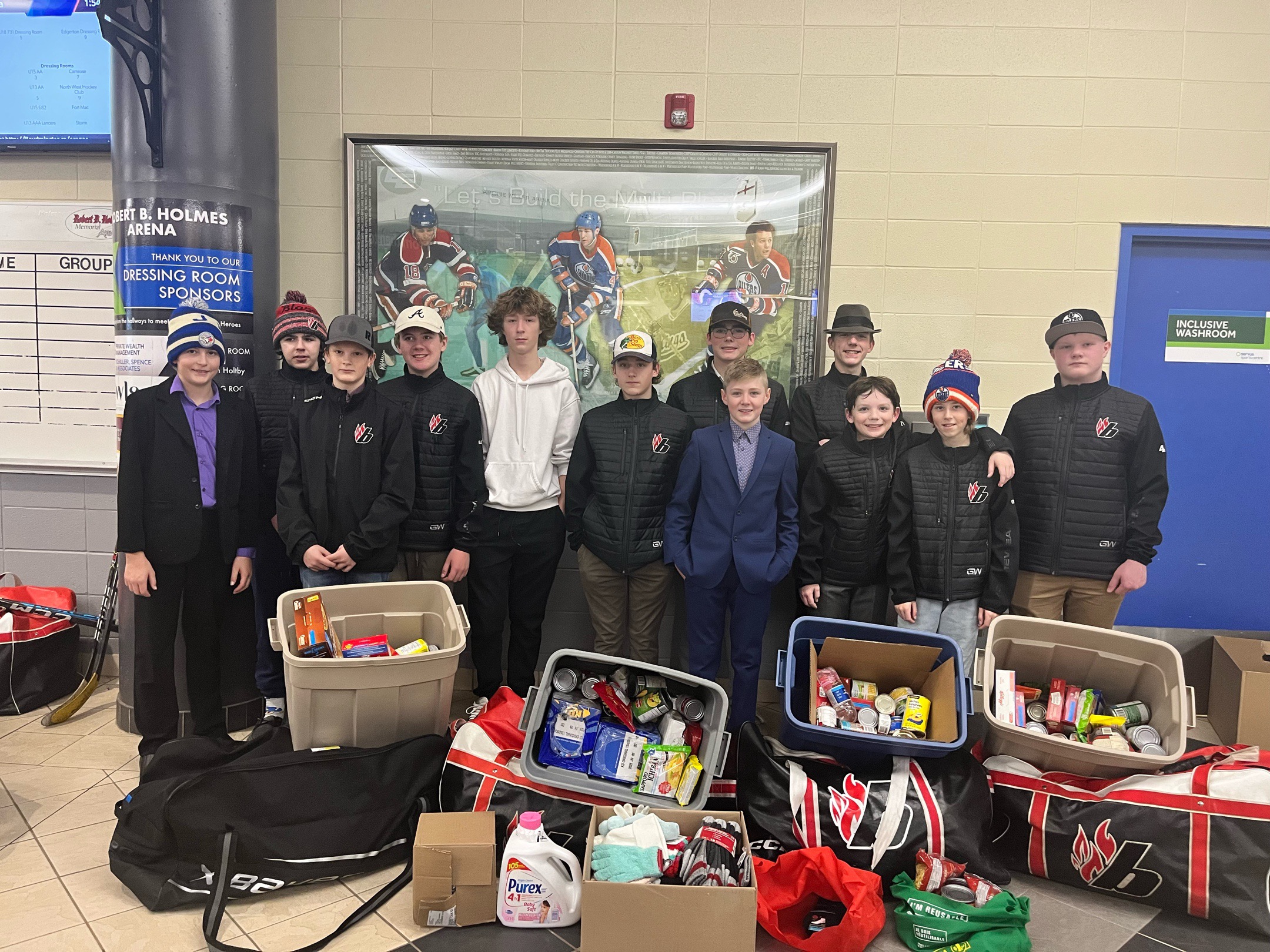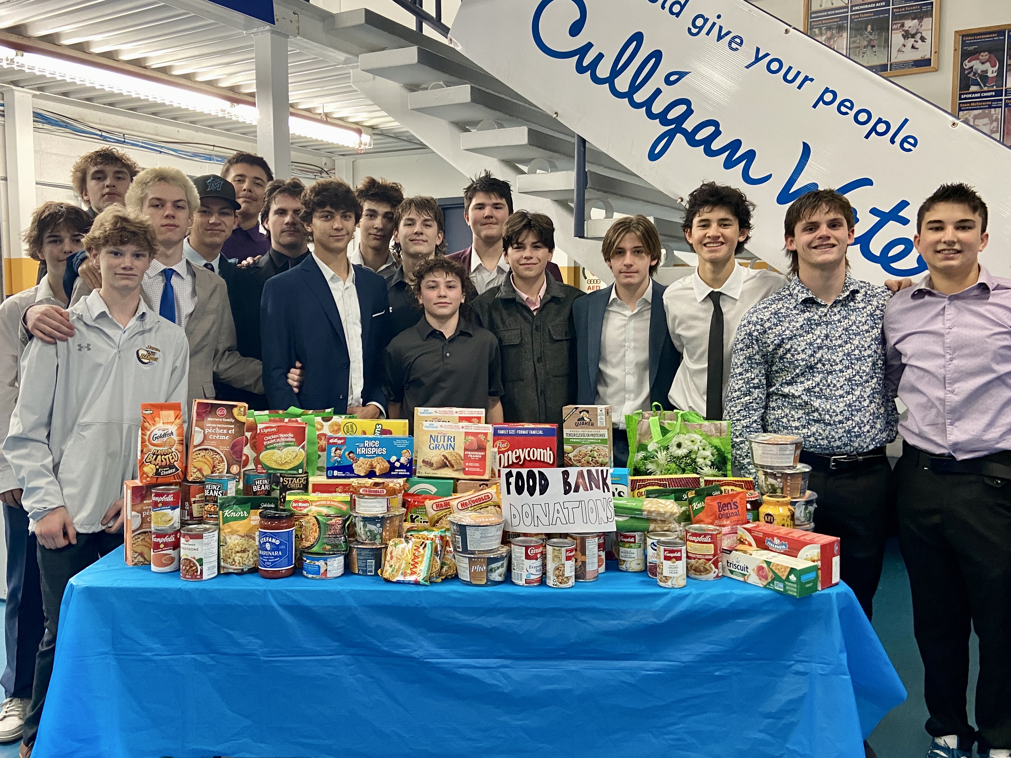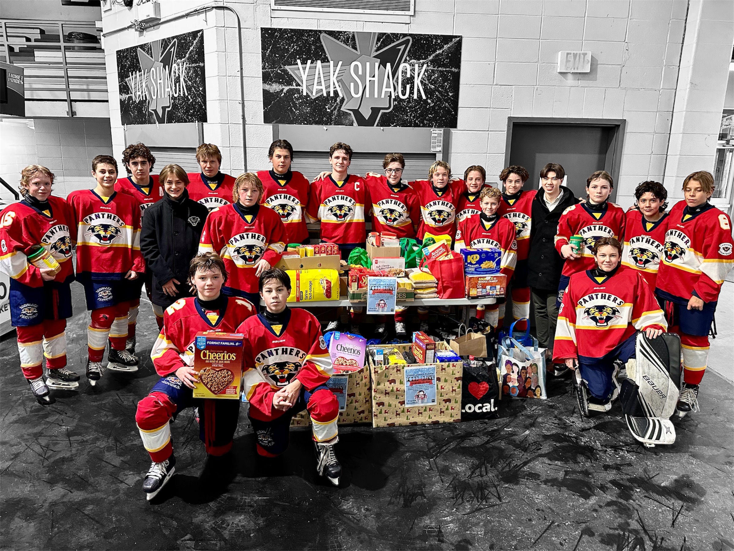 The Lakeland Panthers team organized a food drive and donated all the collected items to the Bonnyville Friendship Center, their local food bank.