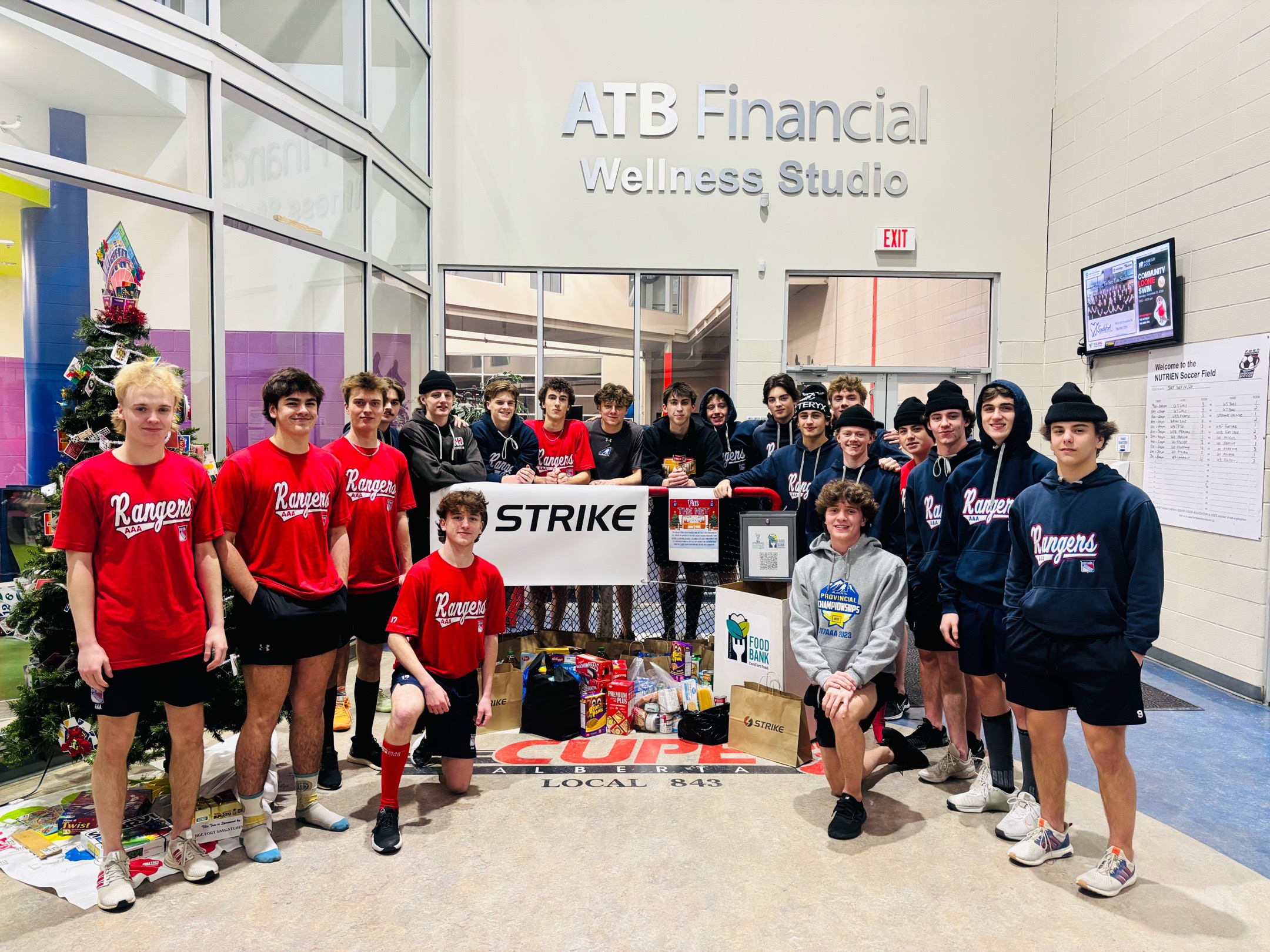 The Fort Saskatchewan U18AAA Strike Group Rangers, along with their families and fans, collected just under 300 pounds of food, as well as cash and gift cards, for the Fort Saskatchewan Food Bank on Saturday, December 14th. The team was proud of the community’s generosity and their collective effort to support those in need during the holiday season.