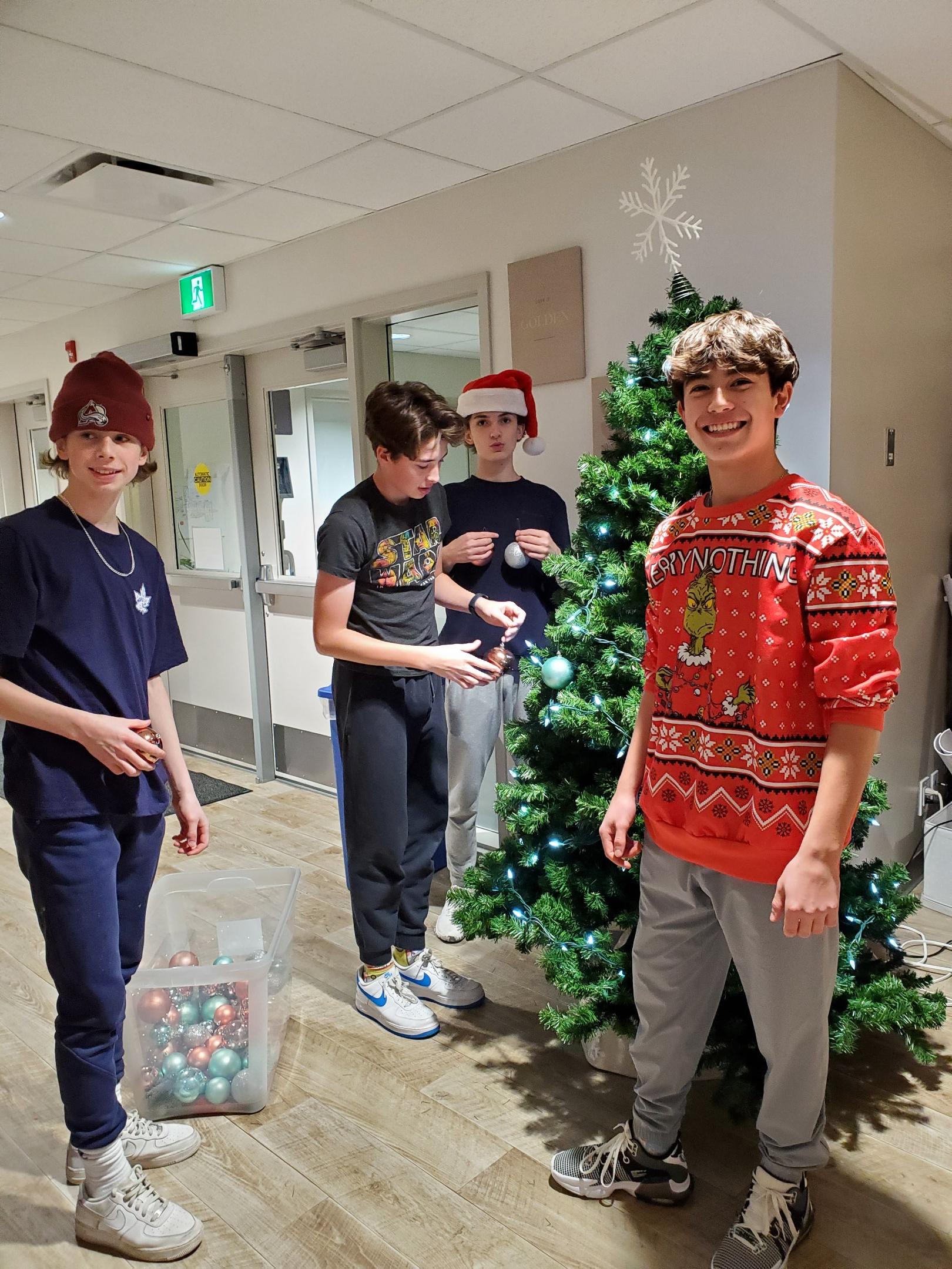 In addition, the players had the special opportunity to decorate the Christmas tree at Thrive Elementary School. Thrive is a public charter school in central west Edmonton that provides an accessible and challenging K-6 program for children from low-income families.