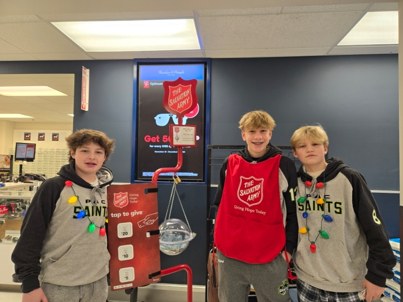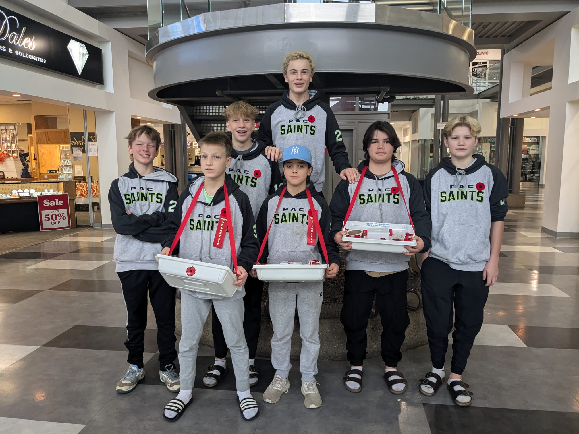 The PAC Rental Bus Lines Saints U15AA team has shown a strong commitment to giving back this season through their support of various community initiatives. The players dedicated two Saturdays in November to gathering donations through poppy sales for the Spruce Grove Legion. More recently, the team volunteered their time at the Salvation Army Christmas Kettle, collecting donations for those in need.