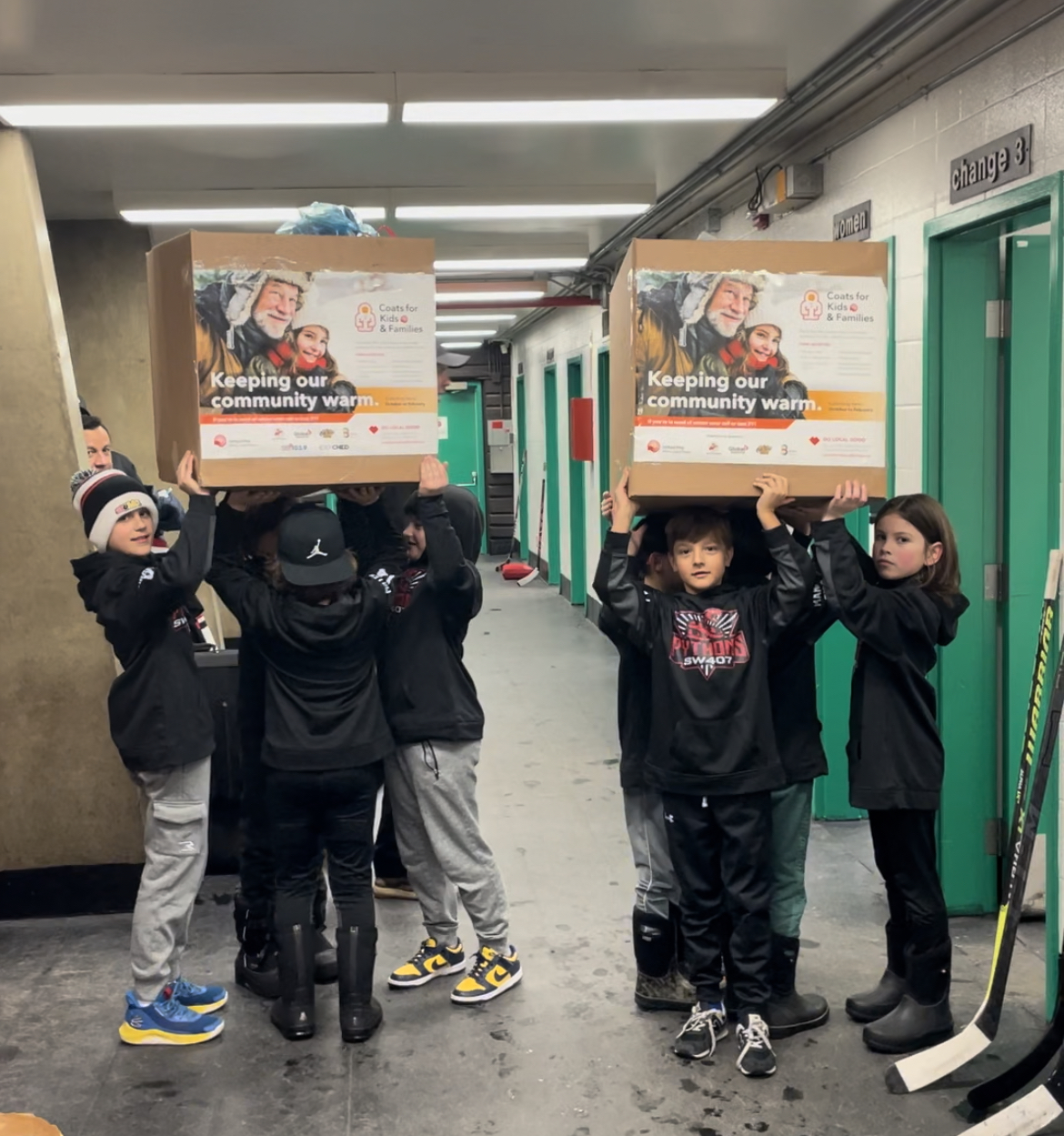 The SW407 Pythons U11 team collected winter gear for the United Way Coats for Kids and Families. With one week remaining, they have collected 52 jackets, 110 toques, 19 ski pants, 27 pairs of mittens, 4 scarves, 7 pairs of boots, 2 vests, and 4 infant onesies. The team is gathering donations through friends and family and challenging their opponents to bring donations to the games throughout December.