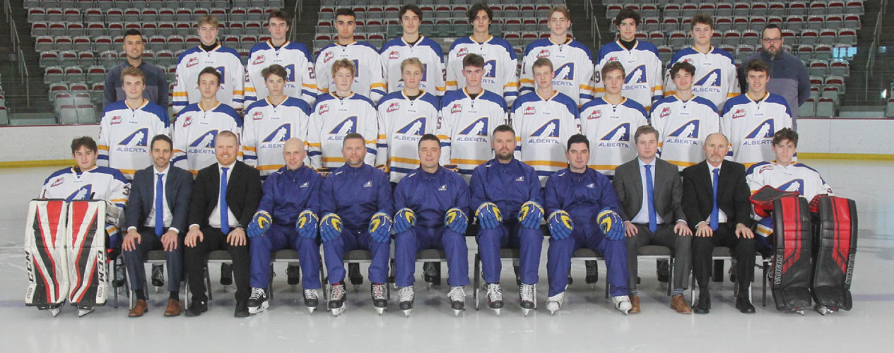 PlayersNumber Name Position Hometown MHA Club Team31 Justen Maric Goaltender Edmonton Hockey Edmonton Canadian Athletic Club (AMHL) 35 Nicholas Jones Goaltender Calgary Hockey Calgary Calgary Rangers (AMMHL) 2 Graydon Gotaas Defence Camrose Camrose Sherwood Park Kings (AMHL) 3 Jaren Brinson Defence Airdrie Airdrie Edge Midget Prep (CSSHL) 4 Kaiden Ellertson Defence Red Deer Red Deer Red Deer Optimist Chiefs (AMHL) 5 Keaton Dowhaniuk Defence Sherwood Park Sherwood Park OHA Edmonton Midget Prep (CSSHL) 20 Ryan Nolan Defence Calgary Hockey Calgary Calgary Northstars (AMHL) 22 Carson Brisson Defence Leduc County Beaumont Leduc Oil Kings (AMHL) 7 Oasiz Wiesblatt Forward Calgary Hockey Calgary Calgary Buffaloes (AMHL) 9 Tanner Scott Forward Sherwood Park Sherwood Park Sherwood Park Kings (AMHL) 10 Jordan Gustafson Forward Ardrossan Fort Saskatchewan Fort Saskatchewan Rangers (AMHL) 11 Josh Davies Forward Airdrie Airdrie PCHA Midget Prep (CSSHL) 12 Billal Noori Forward Edmonton Hockey Edmonton NAX Elite 15s (CSSHL) 13 Koehn Ziemmer Forward Mayerthorpe Mayerthorpe St. Albert Raiders (AMHL) 14 Rieger Lorenz Forward Calgary Hockey Calgary Edge Midget Prep (CSSHL) 15 Connor Gourley Forward Calgary Hockey Calgary Edge Midget Prep (CSSHL) 16 Tyler MacKenzie Forward Red Deer Red Deer Red Deer Optimist Chiefs (AMHL) 17 Reid MacKay Forward Irma Irma NAX Elite 15s (CSSHL) 18 Rylen Roersma Forward Lethbridge Raymond Lethbridge Hurricanes (AMHL) 19 Nate Danielson Forward Red Deer Red Deer NAX Midget Prep (CSSHL) Inj Cale Ashcroft Defence St. Albert St. Albert NAX Elite 15s (CSSHL) Inj Ross Stanley Defence Yellowhead County Whitecourt OHA Edmonton Midget Prep (CSSHL) Inj Bowden Singleton Forward Calgary Hockey Calgary NAX Midget Prep (CSSHL) Team StaffName Title Hometown Current TeamMichael Kraichy Dir. of Operations Red Deer Team AlbertaBarry Medori Coach Mentor Spruce Grove Team Alberta Bobby Fox Head Scout Calgary Medicine Hat (WHL) Brandin Cote Head Coach Red Deer Swift Current (WHL) Jay Pylypuik Assistant Coach Calgary Calgary Dinos (USport) Cody Reynolds Assistant Coach Sylvan Lake RDC Kings (ACAC) Adam Sergerie Video Coach Edmonton Knights of Columbus (AMBHL) Derek Purfield Goalie Coach Calgary Okotoks (AJHL) Myles Berlin Therapist Edmonton Knights of Columbus (AMMHL) Dave Campbell Equipment Manager Grande Prairie Grande Prairie (AJHL) |